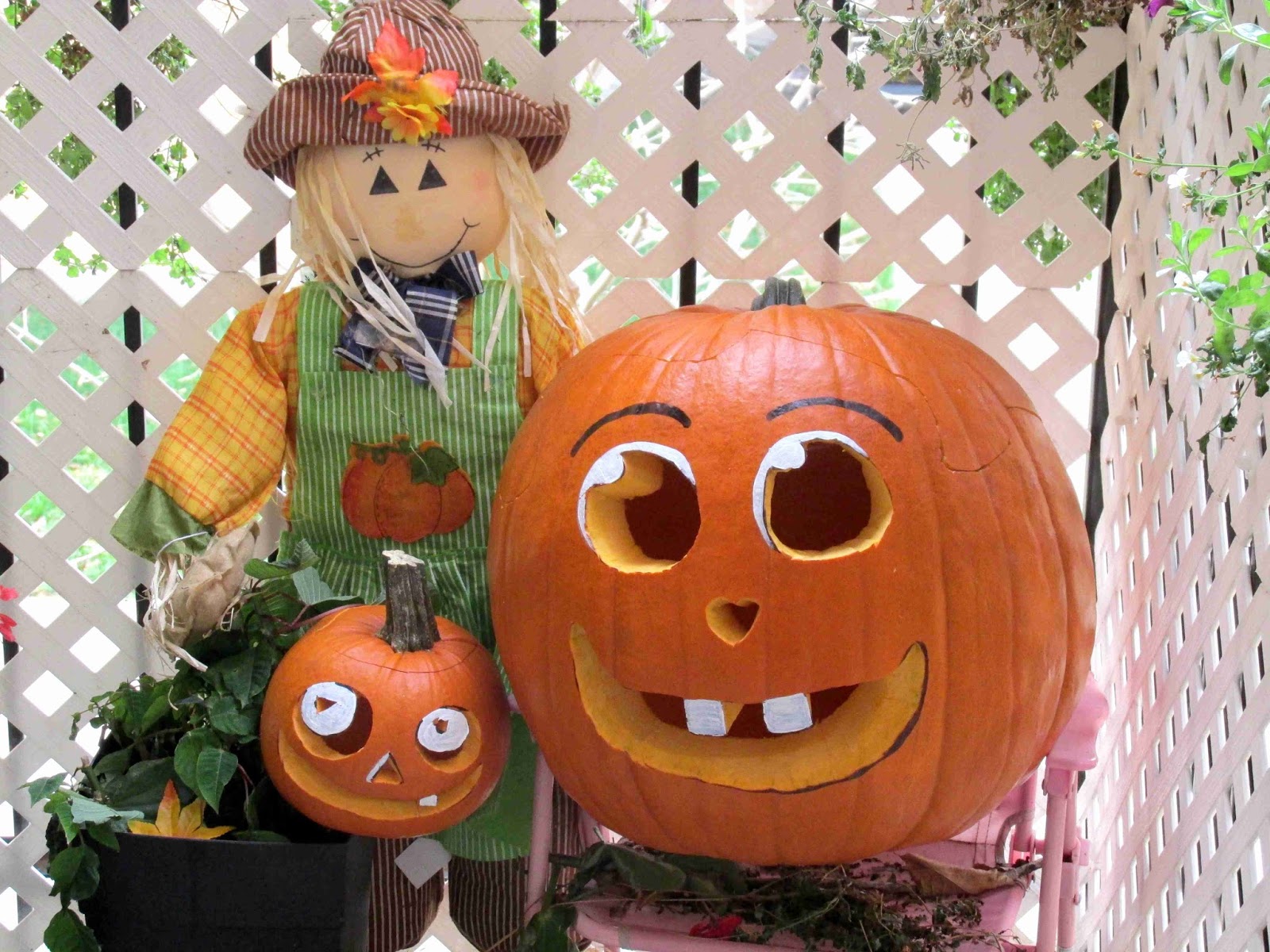 Les courges décorées par Le Chameau pour le dessus de son bureau |