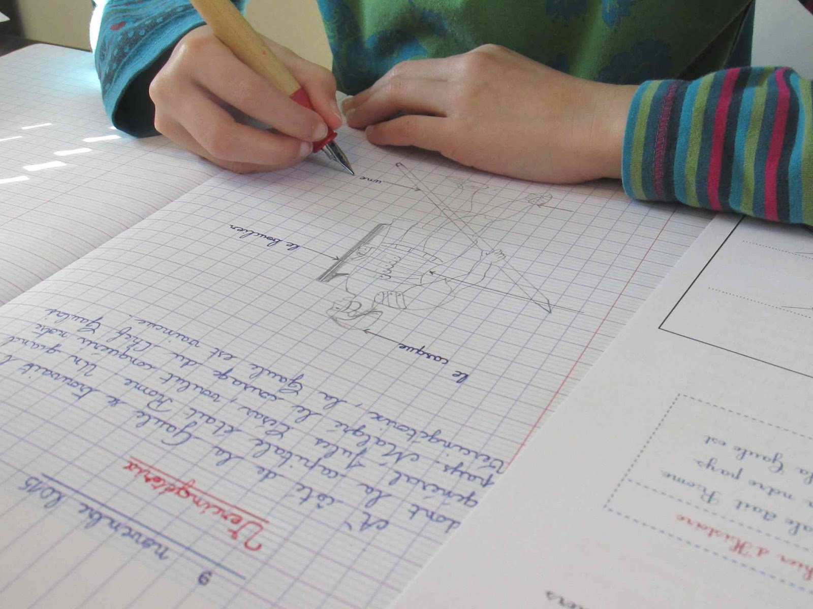 Je m’installe à la table de la cuisine et appelle le Chameau qui me répond « J’arrive » avec un souffle en fin de phrase. L’instruction en famille, ce n’est pas tous les jours une partie de plaisir, ne vous détrompez pas. Parfois c’est elle qui n’a pas envie, est fatiguée, veut faire autre chose, parfois c’est moi. Je remarque que ce sont les 5 premières minutes les plus difficiles, il faut du temps pour se mettre en mode travail.
