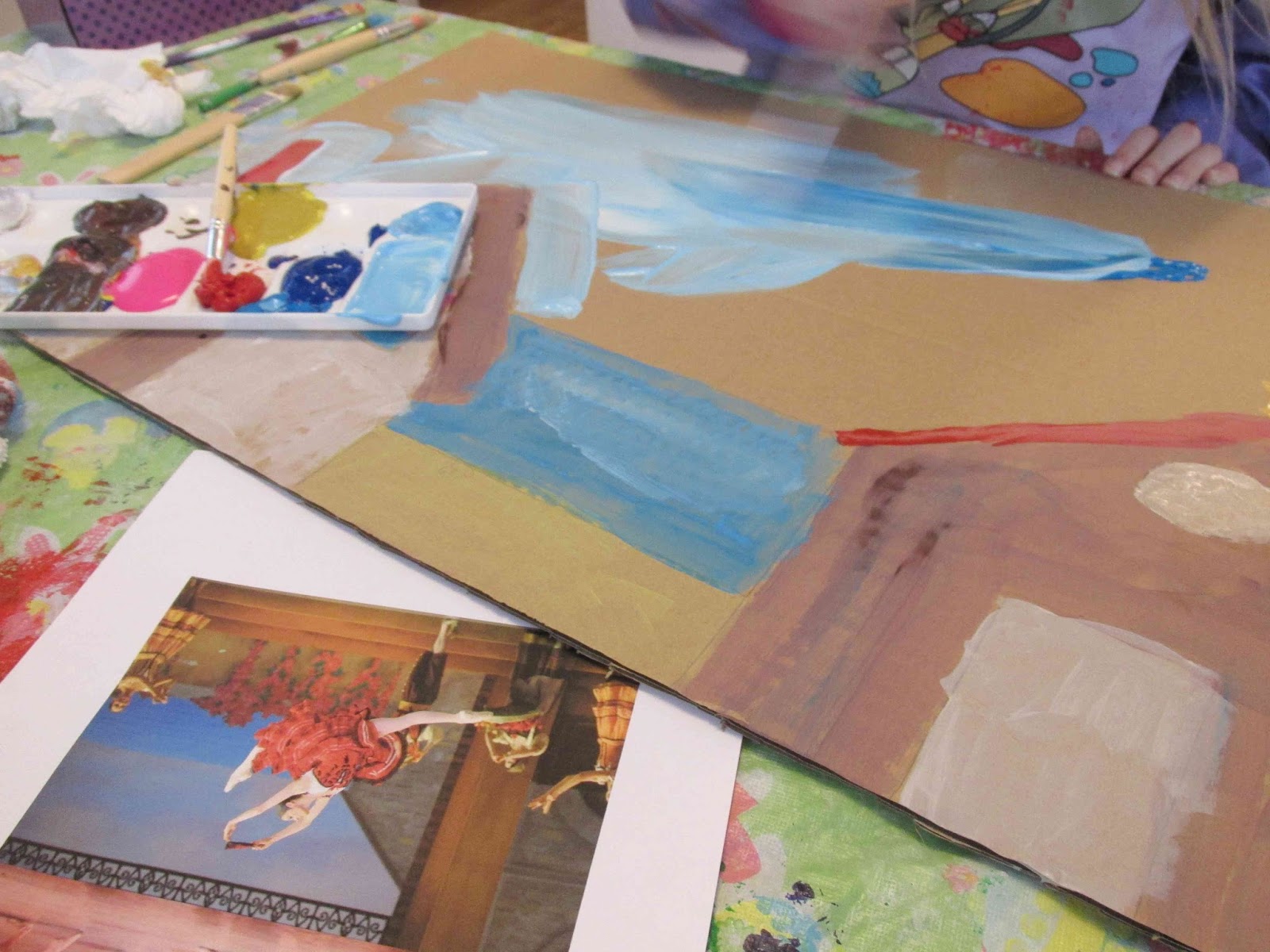 4. J’ai proposé au Chameau de peindre un fond pour ses danseuses. Elle s’est inspirée d’un décor de Don Quixote que j’avais imprimé.