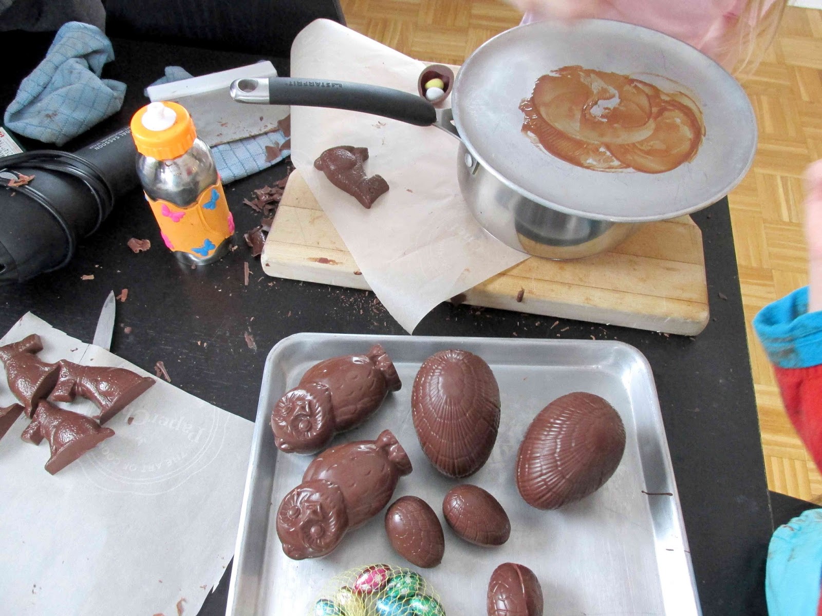 Je n'en ai pas fait cette année par manque de moyens( pas de quoi racheter ce qu'il fallait ) mais l'année prochaine je me rééquipe en moules et on se lance en famille dans de vrais chocolats de Pâques.