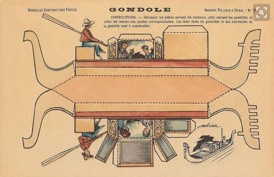 J’ai trouvé cette image de gondole sur Pinterest. Je l’ai choisie comme patron à reproduire sur des feuilles de papier noir pliées en deux. Saviez-vous que les gondoles de Venise sont toutes noires à cause d’un décret dogal (du Doge) datant du XVIème siècle et que cette couleur noire a été choisie en souvenir de la peste ? On en apprend des choses en faisant l’école à la maison (ou en voyageant…).