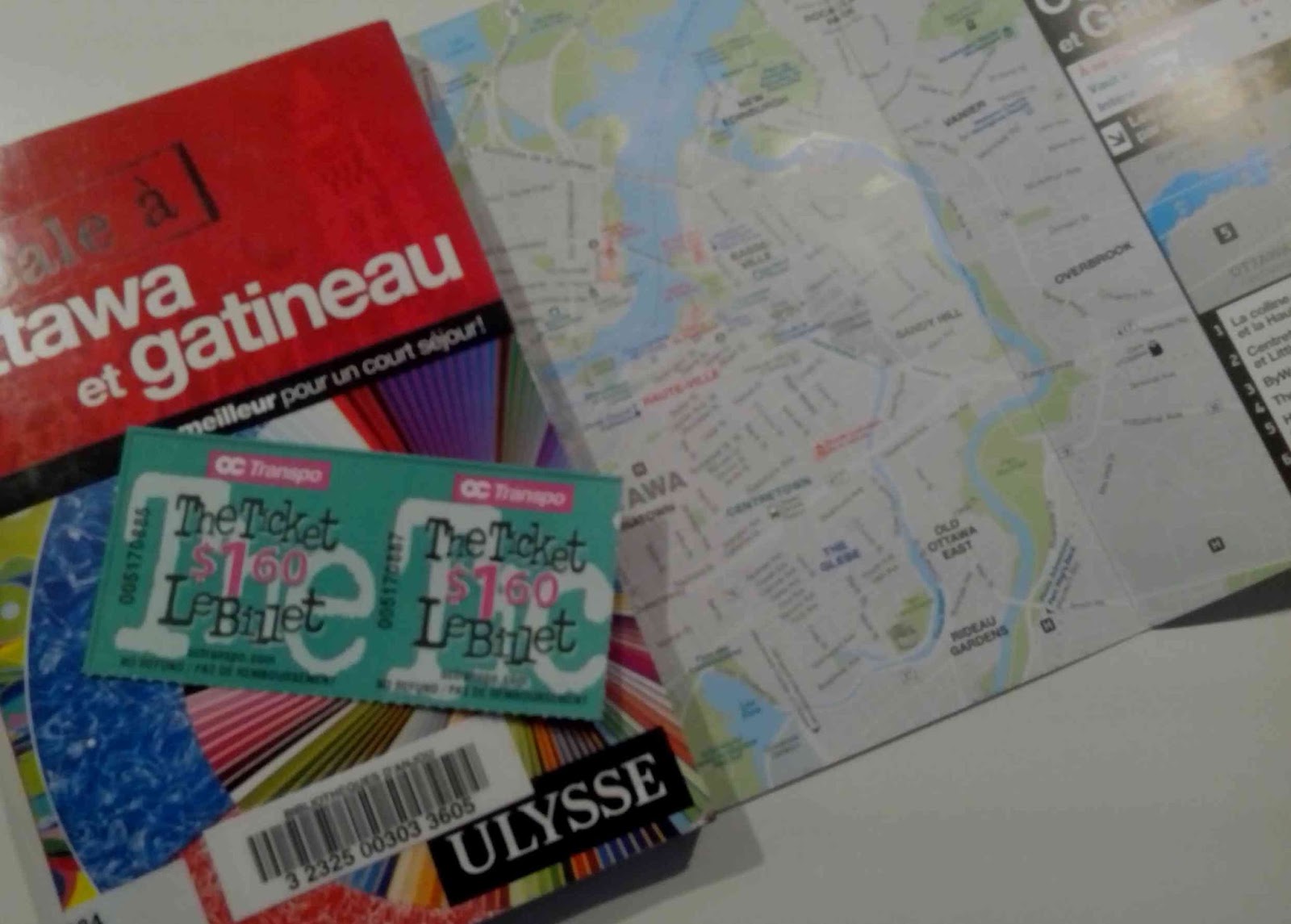 De la gare d’Ottawa à l’appartement de vacances, nous avons pris le taxi. Pour le transport en ville, nous avons pris le bus Transpo (dont tickets en photo sur le livre ci-dessus) et avons beaucoup marché. 2 tickets par adulte pour 1 passage, soit 3,20$ en achetant un kit de 6, c’est plus cher qu’à Montréal (passage bus-métro à 2,65$ en achetant un kit de 10 tickets). Le service des bus fidèles au drapeau canadien rouge et blanc avec une feuille d’érable est pratique, les chauffeurs sympathiques. Deux nous ont offert le transport.