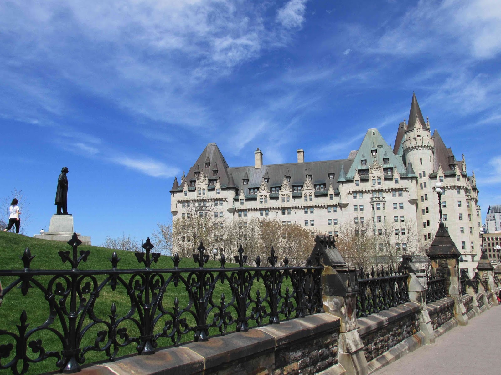 | À gauche la statue de Sir W. Laurier, à droite le Fairmont Château Laurier |