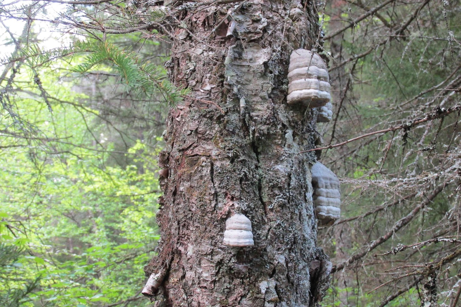 Sur un arbre, nous avons découvert des amadouviers. Kézako ? Ce sont des champignons utilisés, entre autres, par les amérindiens pour faire du feu. Ce nom est d’origine provençale « amadou » qui signifie « amoureux » pour sa capacité à s’enflammer. Plus tard, sur un chemin, le Chameau en a trouvé un par terre et a voulu le faire brûler sur le feu de camp le soir.