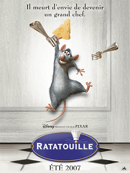 Ratatouille, le film d’animation du rat-cuisinier, a beaucoup de succès chez nous. Nous ne nous en lassons pas et pour cause, les enfants aiment faire la cuisine. J’ai piqué des toques de Papa et ai laissé nos p’tits chefs en herbe cuisiner la célèbre ratatouille de chez Gusteau sous l’œil expert de Rémy.