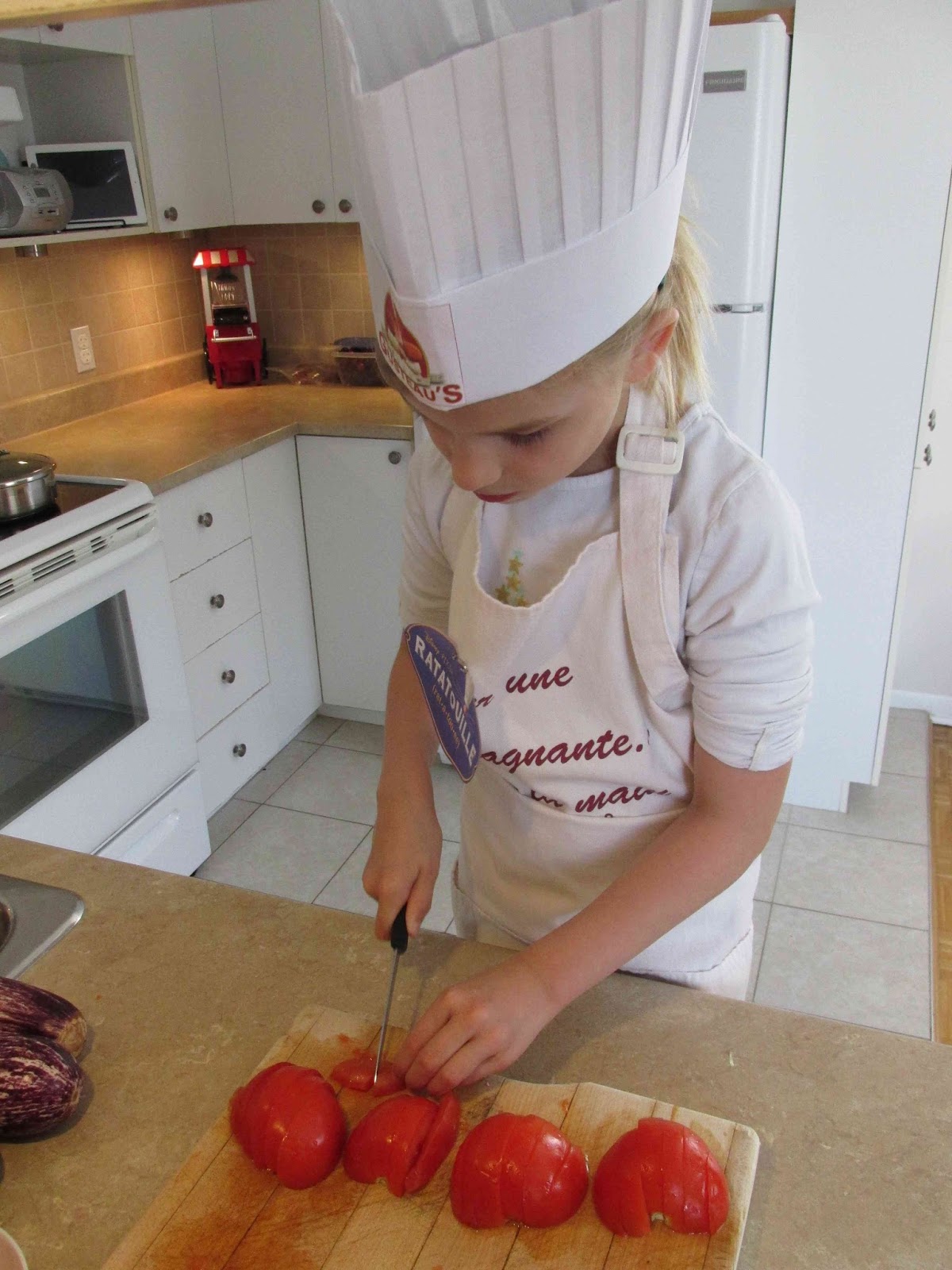Mais comme chez toi, elle a 4 ans, elle manipule un couteau, remue la sauce, éteint le four (discrètement je repasse derrière elle pour jeter un oeil). Elle aime ses responsabilités et les prend très au sérieux.