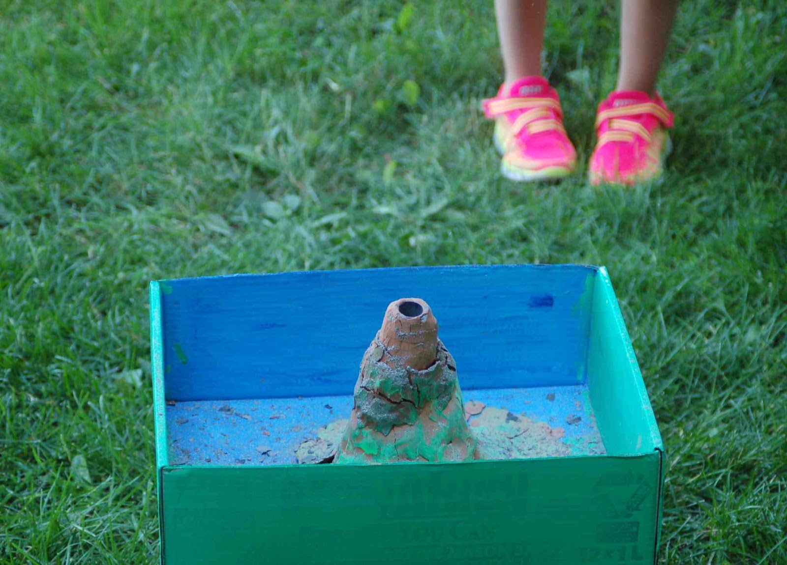 Bon, le volcan partait en brioche à cause des différentes couches d’argile, ça craquait d’un peu partout. Mais le résultat était à la hauteur de ce que j’imaginais et le Chameau était toute heureuse d’avoir recréé l’éruption de cendres.