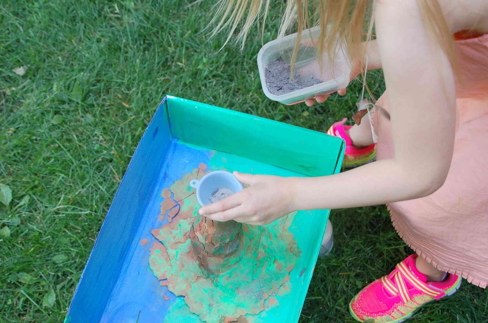 Le soir, nous avons fouillé dans le bac de recyclage pour y dénicher des feuilles à faire brûler et obtenir des cendres.Et puis une après-midi, nous avons recréé l’éruption de cendres…